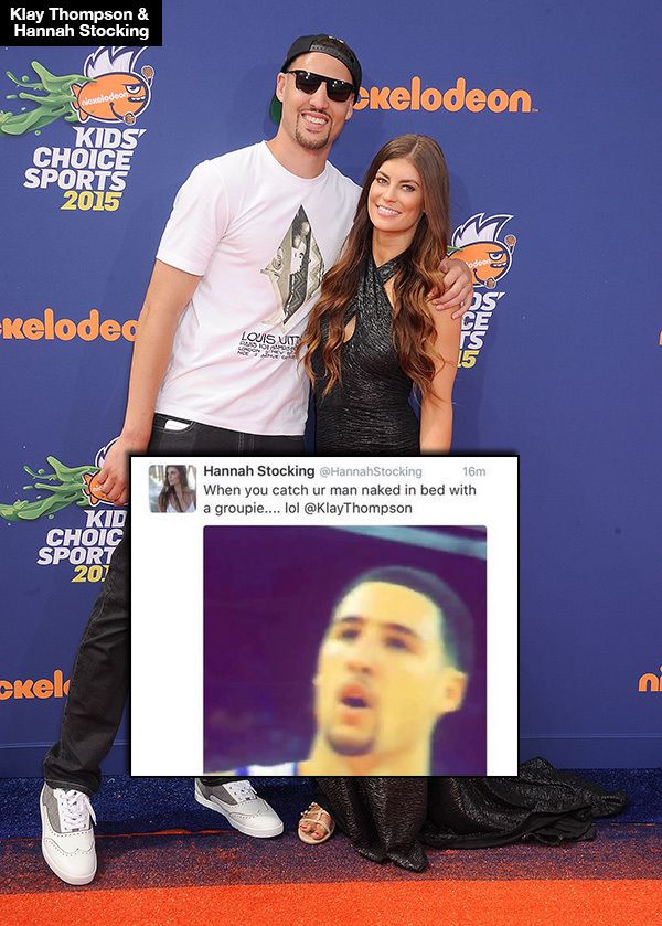 A modelo Hannah Stocking mulher do atleta Klay Thompson do Golden State Warriors flagrou o companheiro na cama pelado com outra mulher no ltimo domingo 11 e contou aos seus seguidores no Twitter. Getty Images Klay Thompson was publicly put on blast via Twitter by his girlfriend Hannah Stocking on Oct. In October 2015 Hannah publicly accused Klay of cheating on her.